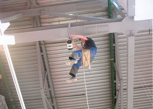 Для аэропорта и аэропорта безопасность - это что-то вроде кита, на котором все держится. Самолеты, авиационное оборудование, здания и сооружения аэропортов и аэродромов относятся к зоне повышенной опасности техногенных катастроф. И система пожарной безопасности - одна из важнейших составляющих функционирования аэропорта и аэродрома, обеспечивающая защиту персонала и техники от нештатных ситуаций с перегревами, возгораниями, задымлениями и т.п. Для надежного контроля за состоянием внутренней среды ангаров для оборудования и самолетов необходимо разместить серии пожарных датчиков в заданных точках по всей площади здания под крышей. Наша команда промышленных альпинистов успешно справилась с поставленной задачей. Спецификой выполнения работ по монтажу системы пожарной безопасности была необходимость проведения не только работ по установке, закреплению датчиков и прокладки кабельной трассы на высотах от 15 до 20 метров, но и выполнения ряда требований по поверке и настройке датчиков. Система пожарной безопасности - единый комплекс, объединяющий датчики, контролирующие панели, компьютерные блоки, программное обеспечение и т.п. От соответствия каждого элемента системы заданным параметрам зависит успешное выполнение комплексом поставленных задач. Мастера-высотники точно и в строгом соответствии с техническими требованиями выполнили все работы по сбору показаний каждого прибора, выставлению заданных параметров, поверке датчиков. Мытье фасада офисного здания Газпрома в Теплом Стане